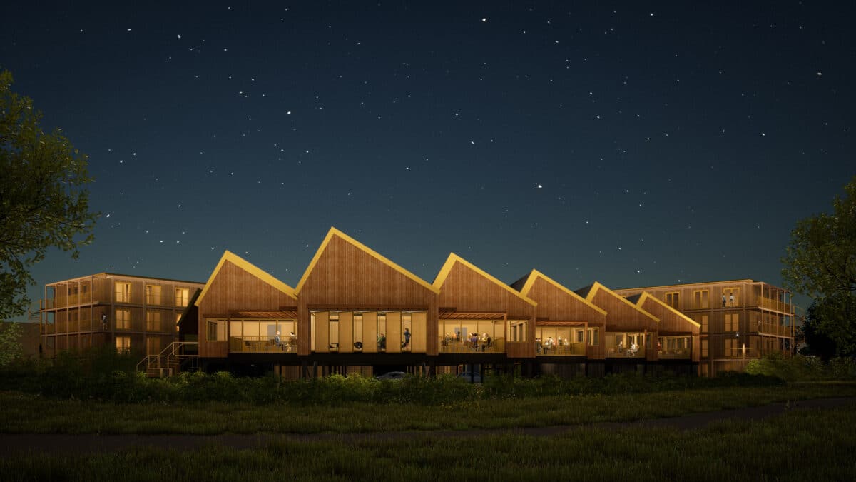 Het Houten Hotel is reeds opgeleverd.
