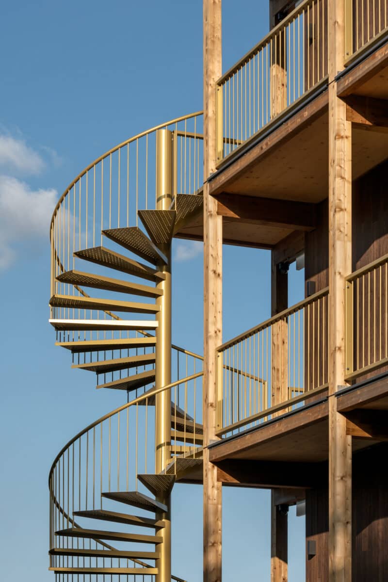 Voor dit project werken wij samen met Mirck Architecture uit Amsterdam. Het al aanwezige houten gebouw (uit 2019) is onderdeel geworden van een groter geheel. De twee nieuw gebouwde houten vleugels zijn 4 bouwlagen hoog. Nieuwbouw en oudbouw vormen gezamenlijk het HOUTEN HOTEL. ‘Het ontwerpen en bouwen met CLT is, net als het gebruik van het houten gebouw, zo goed bevallen, dat we bij de grote uitbreiding weer voor CLT gekozen hebben’, aldus Sander Mirck, architect.