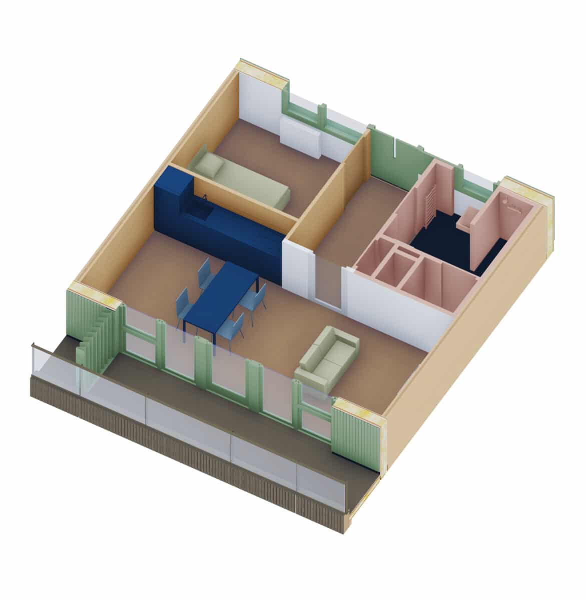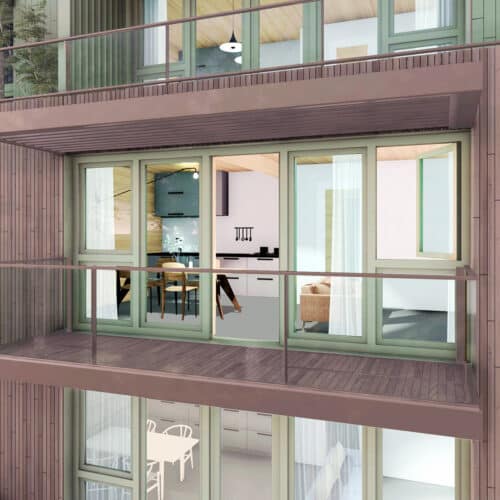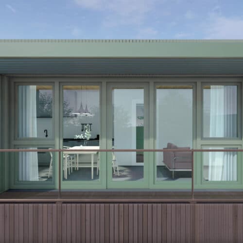 Voor dit project hebben wij samengewerkt met Loer Architecten. In het ontwerp zit een sterk geloof dat betaalbare woningbouw er elegant uit kan zien. Door het houten casco op een slimme manier te detailleren is het ontwerp aanpasbaar en demontabel. Hierdoor kan het ontwerp makkelijk worden voorzien van een andere gevel en kunnen de gebouwonderdelen in de toekomst worden hergebruikt. Loer Architecten toont met dit ontwerp aan dat betaalbare houtbouw er fantastisch uit kan zien. Het FLETTS-concept werd op deze manier een slim samenspel van techniek en esthetiek. ‘In dit project zit een sterk geloof dat betaalbare woningbouw er elegant uit kan zien.’, aldus Frank Loer, architect.