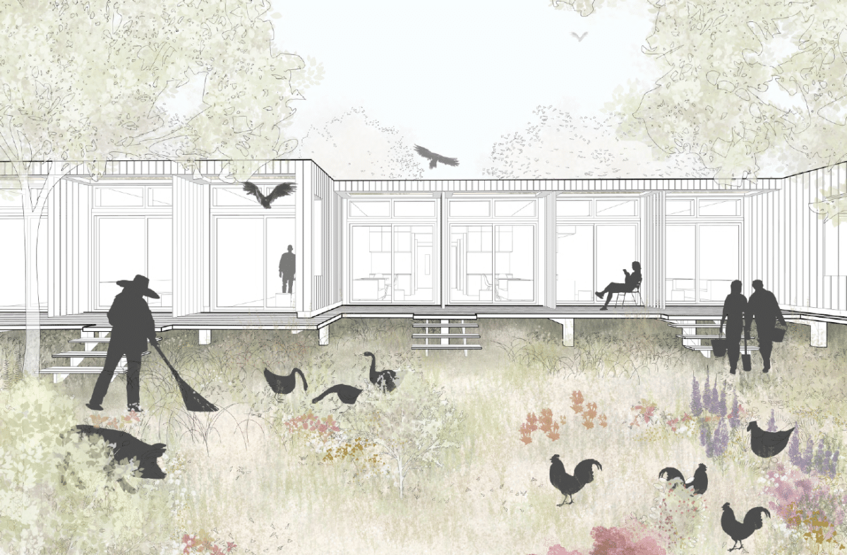 Voor dit project werken wij samen met Vertex Architectuur & Stedenbouw. In Almere Oosterwold realiseren we een woonzorgproject met 24 studiowoningen en drie gemeenschappelijke woonkamers. Het ontwerp is ontwikkeld vanuit de gedachte dat zorgwoningen niet alleen functioneel, maar ook warm en uitnodigend moeten zijn. De woningen zijn compact en slim georganiseerd rond collectieve ruimtes, waar ontmoeting centraal staat. Met natuurlijke materialen en heldere architectuur sluit het project aan bij de open en groene omgeving van Oosterwold.